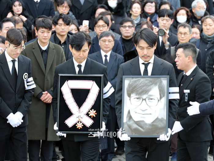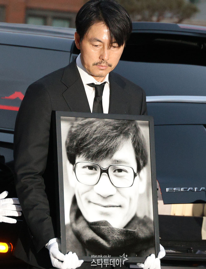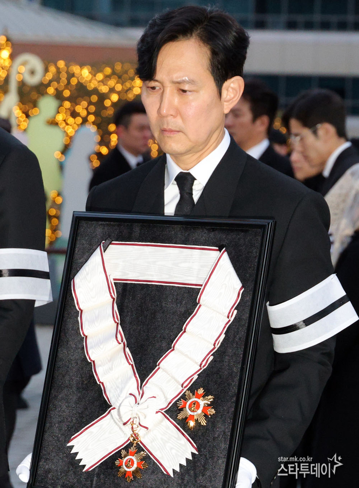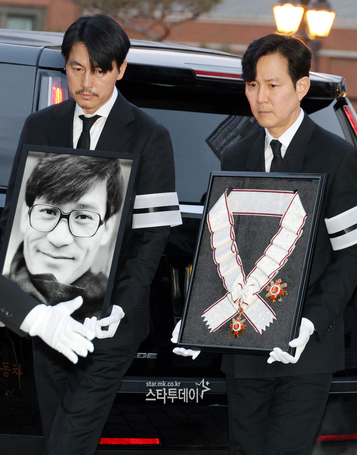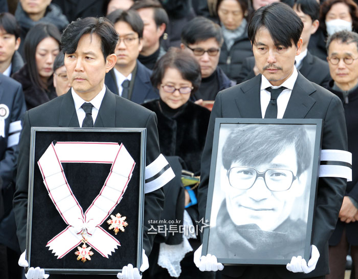 #정우성-이정재,안성기 영정과 훈장 들고