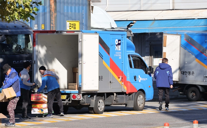 미-이란 전쟁 여파로 기름값이 폭등하자 기사들이 신음하고 있다. 사진은 서울시내 한 택배사 물류창고에서 관계자들이 택배를 화물차에 싣는 모습. [한주형 기자] “요즘에는 주유소 경유 가격을 볼 때마다 가슴이 철렁합니다. 정말로 생계가 위협받는 상황입니다.”