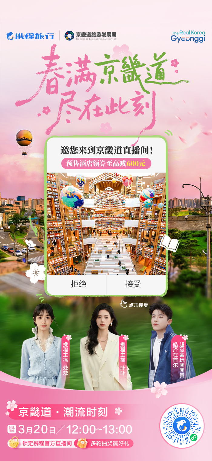 경기관광공사는 20,21일 이틀간 스타필드 수원 별마당도서관에서 중국 최대 여행플랫폼인 씨트립(트립닷컴 그룹 운영플랫폼)과 중국 여행소비자 대상,경기관광 홍보 및 상품 할인 판매를 위한 온라인 라이브 커머스를 진행한다.