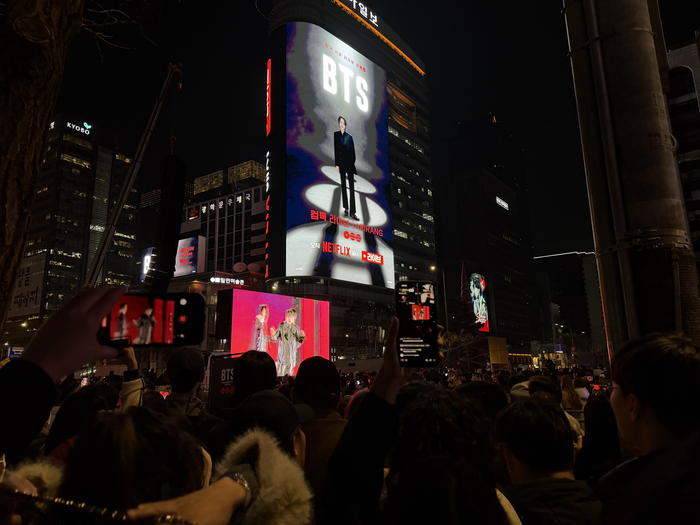 일부에서는 이런 분위기를 두고 유난이라고 말하기도 했지만,BTS를 보기 위해 한국을 찾은 외국인에게는 좋은 볼거리였다. 현장에 별도 체험 부스나 팝업이 많지 않았던 만큼 거리의 분위기가 오히려 재미를 더했다.