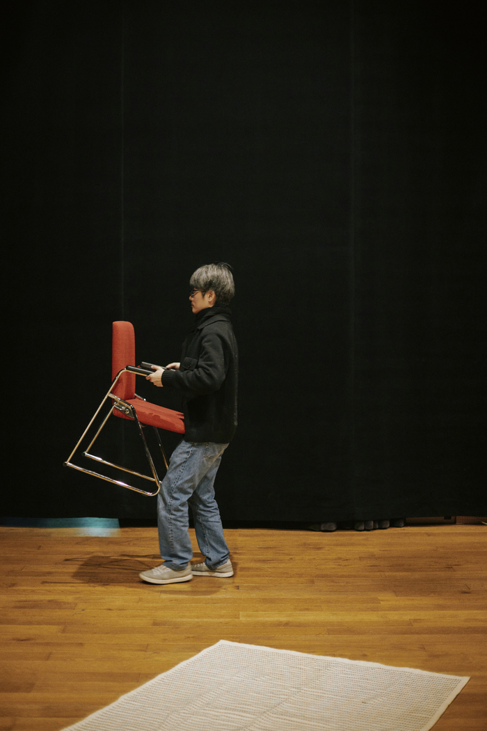 작곡가 카입이 공연 ‘파빌리온 72’ 를 준비하는 모습. 국립극단 카입은 “72시간은 재난 현장에서 인간의 신체가 버텨낼 수 있는 생존의 임계점”이라며 “생리학과 심리학에서는 외부의 자극과 정보가 차단됐을 때 인간의 기존 인지 체계가 무너지는 지점”이라고 설명했다. 이어 “극장의 통제가 실패하고 필연적으로 피로와 사건이 발생하는 시간,이때의 예측 불가능함과 어긋남이 기존 극장의 질서를 낯설게 재편할 것”이라고 덧붙였다.